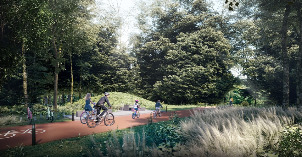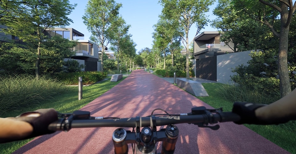 Extensive forested green spine and cycling/walking trails