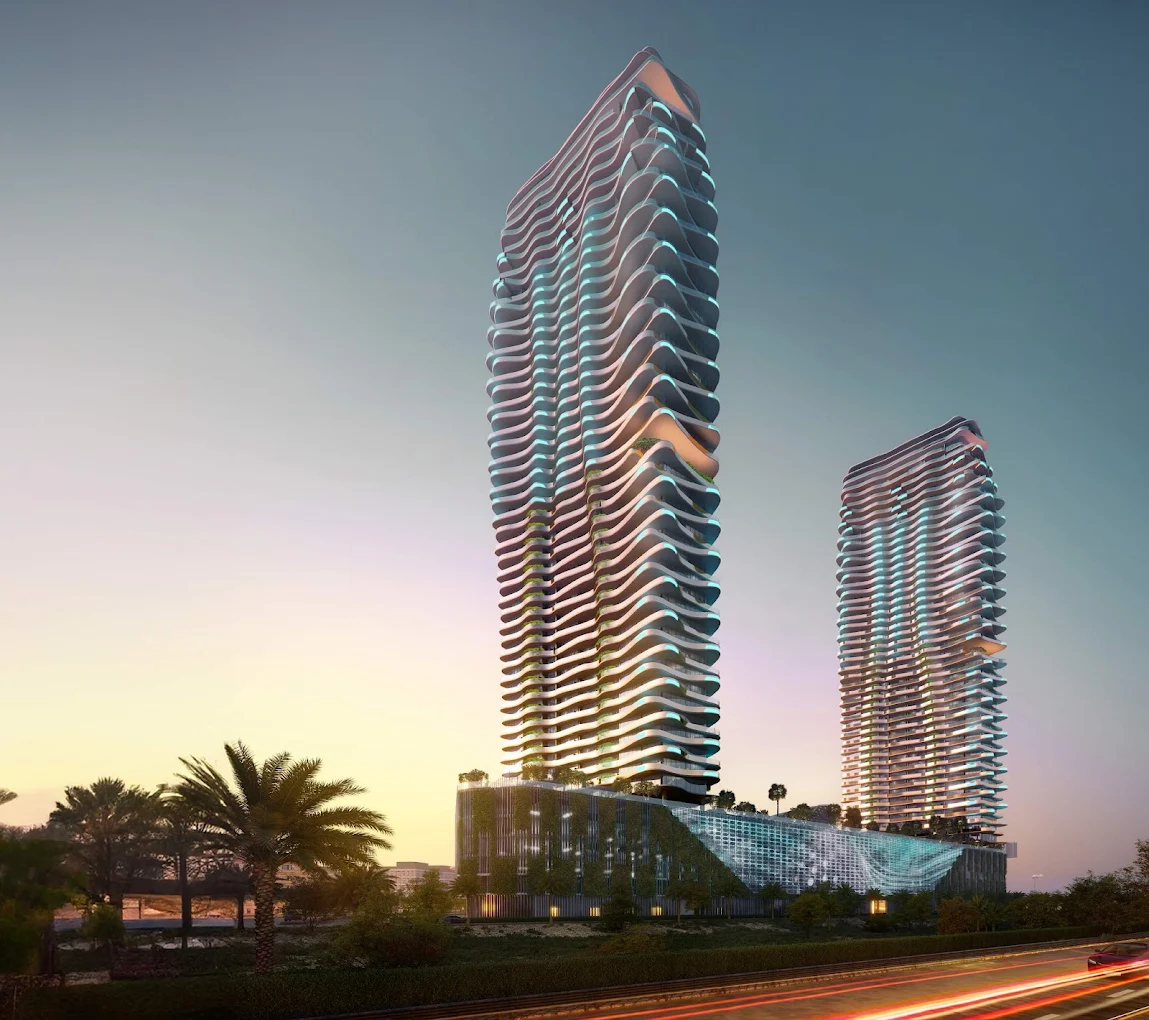 The development features approximately 1,492 residential units housed in two iconic towers — Tiffany and Cyan — built around the UAE’s largest podium lagoon, creating a waterfront living experience within the city.
